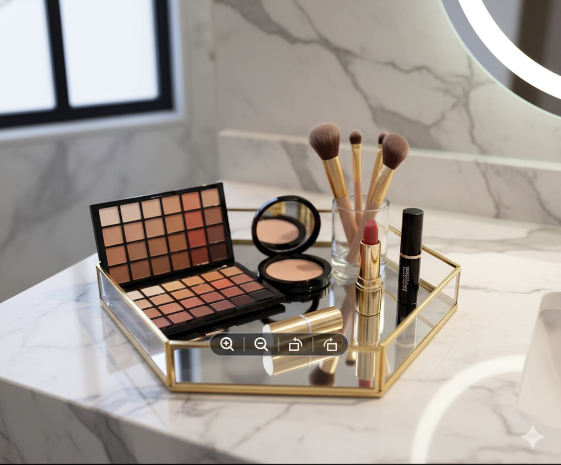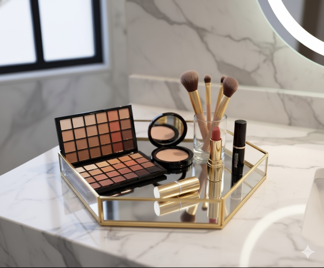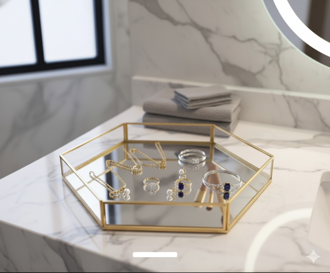Nordic Style Gold Mirror Tray Cosmetic Container Lipstick Necklace Jewelry Organizer Glass Baskets Desktop Storage Boxes