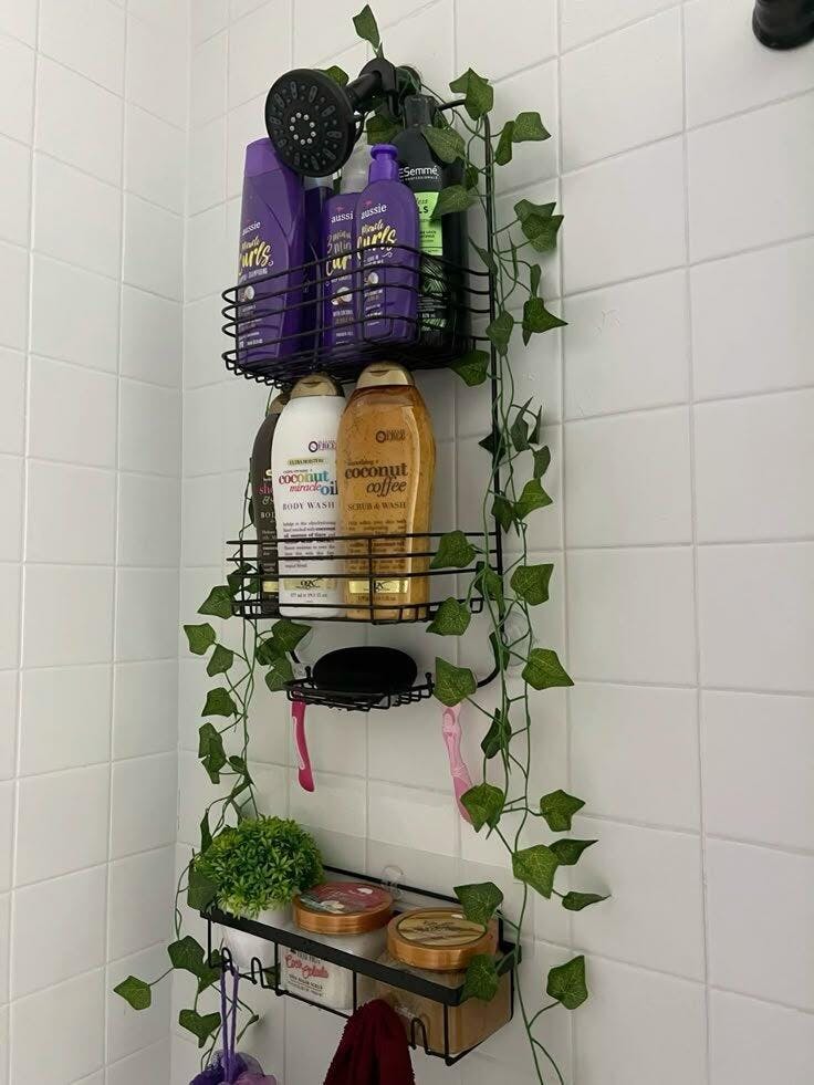 This set of 5 black shower shelves  includes 2 shower boxes, 2 brackets for soap, 1 support for toothbrushes and 5 adhesives. The front hook can be used to hang sponges, towels, hair laces, razor groping and mouthwash cups, saving plenty of space. The high-capacity bathroom organizing shower can store all your bathroom supplies. In addition, shower shelf suitable for bathroom, kitchen, tool room, etc. Take on many different roles to meet your needs. They are made of high quality stainless steel, waterproof, rust resistant, scratch-resistant, these shower shelves for tile walls are durable and they are easy to install with their self adhesive stickers. The modern hollow design makes the shower shelf more convenient to ventilate and empty to keep your things ventilated and dry, moisture-proof. The triangular design makes better use of the corner area.