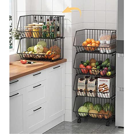 • Flexible Configuration: The individual baskets are stackable and detachable. Use them together as a 4-tier unit or separate them into two smaller carts or individual storage bins to suit your exact needs.