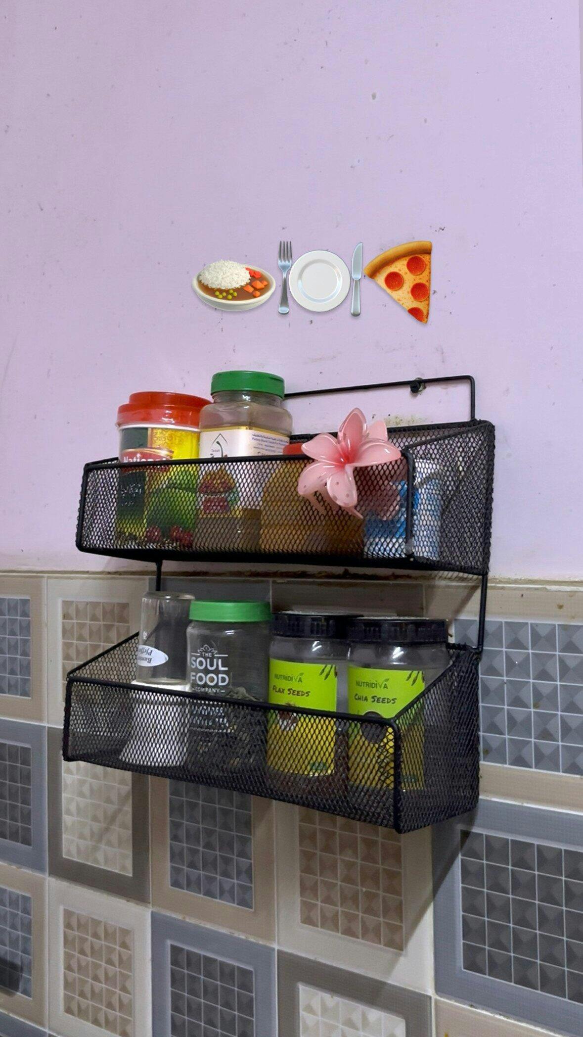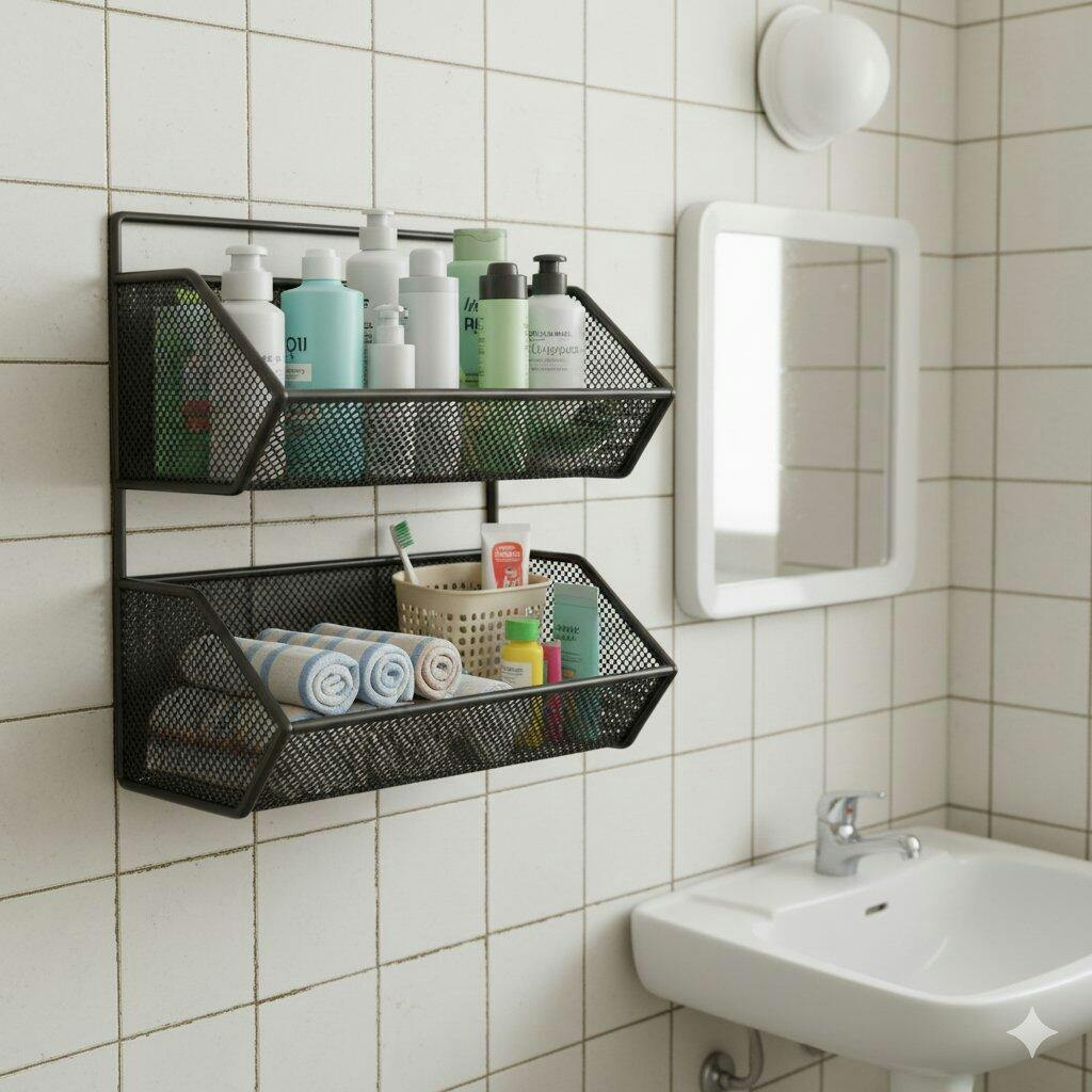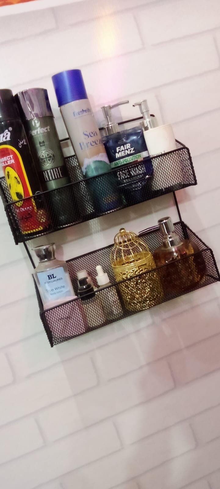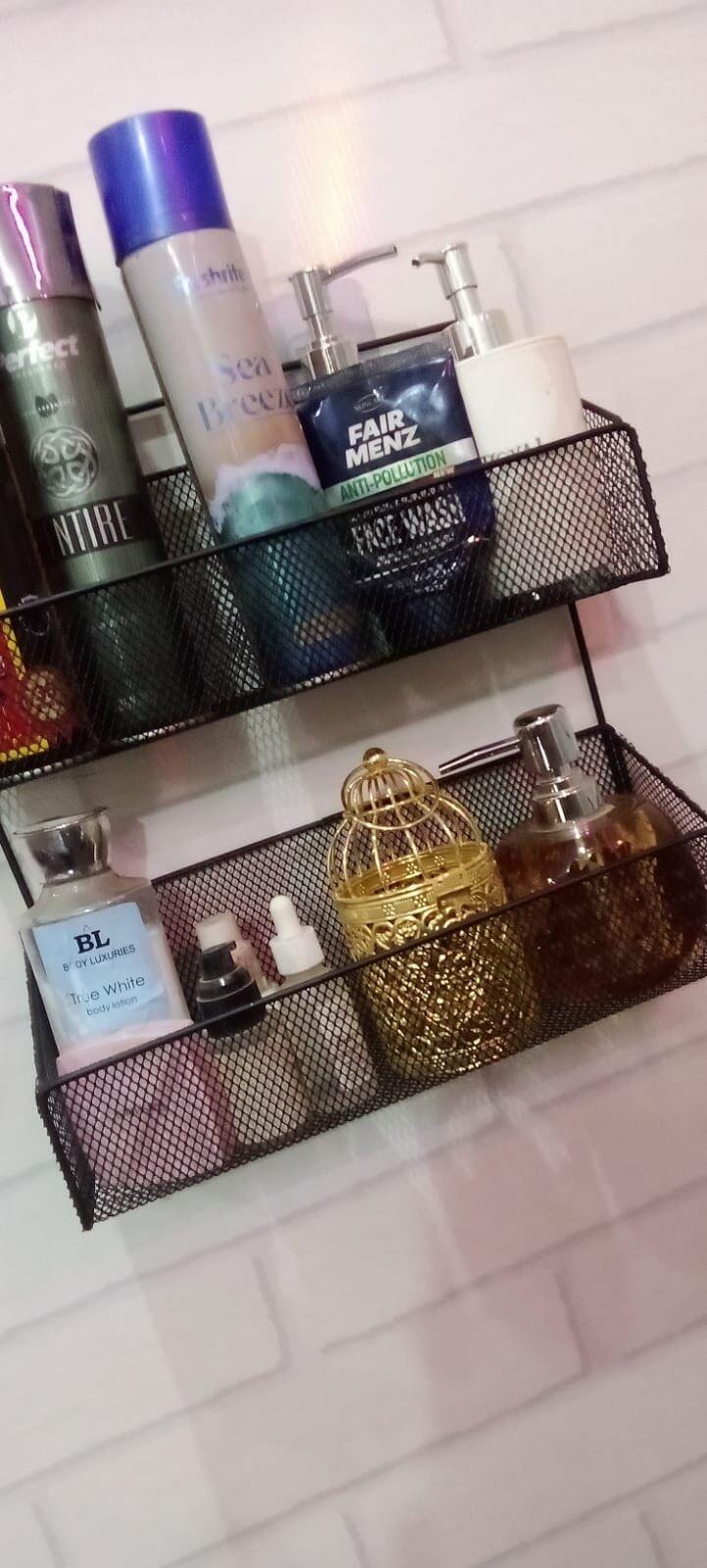 • 🏘️【Easy To Install】: Double Layer Storage Basket Adopts Adhesive Design, No Need To Drill Extra Holes In The Wall, Easy To Install