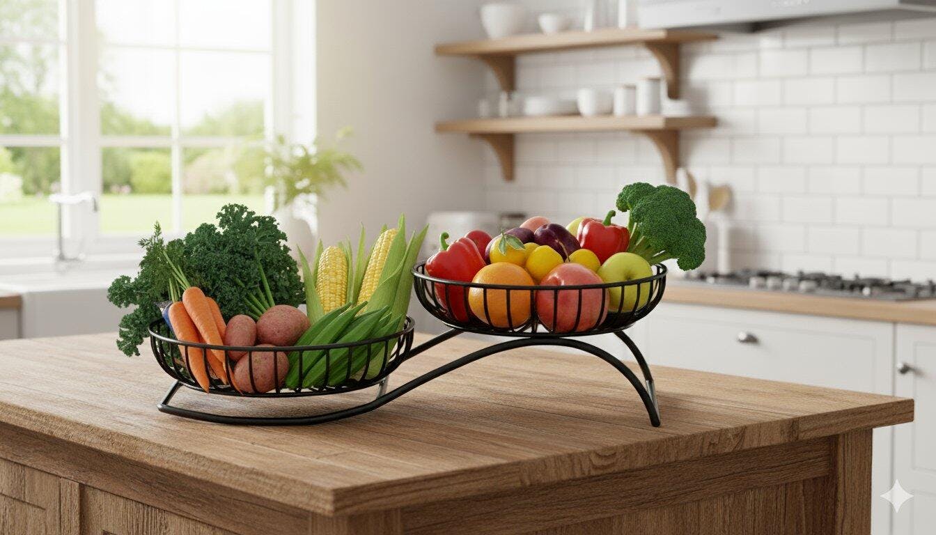 • 【Versatile Use】:Metal fruit bowl for kitchen for vegetables, eggs, snacks or breads. Its versatility makes it an essential item in every household.