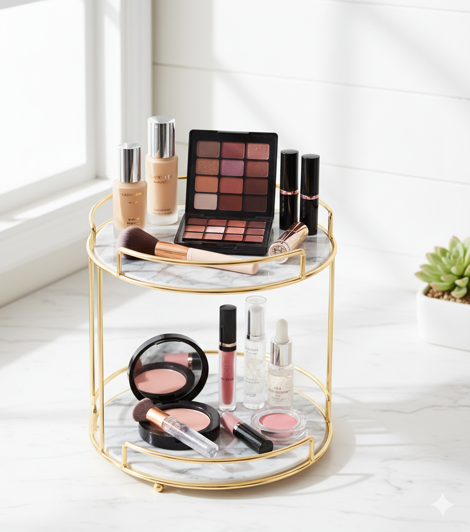 The make-up organizer is supplied with 2 trays that can be placed anywhere in the vanity organizer and adapted to the size of your cosmetic products.