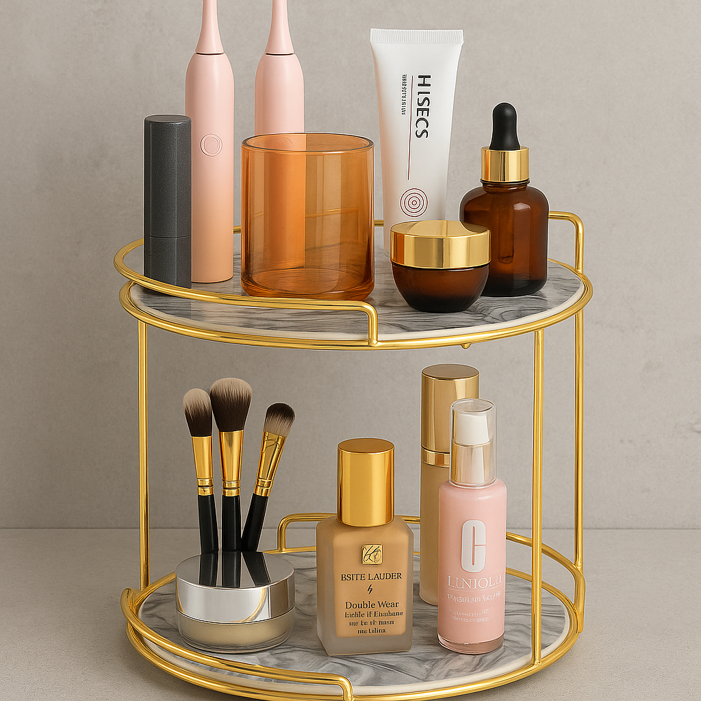 Cosmetic organizer A stable and sturdy base plate holds the cosmetics together and rotates gently and silently to ensure good carrying capacity.
